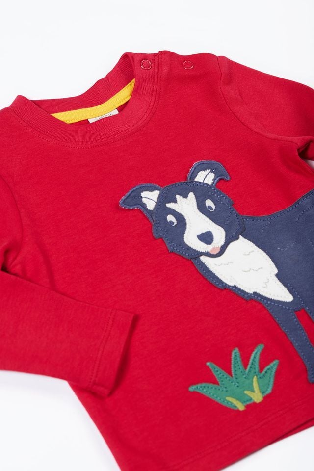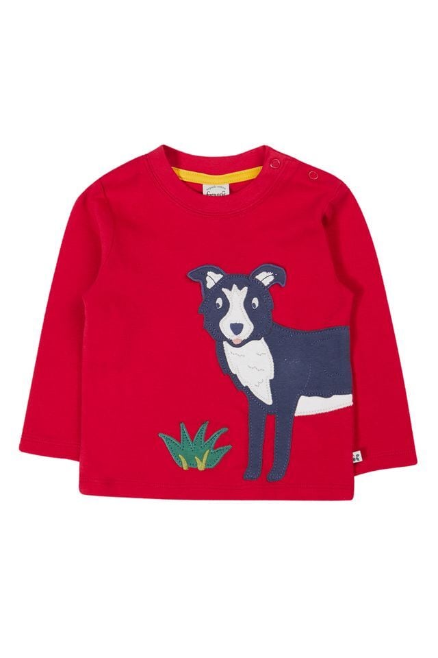 インポートらしい深紅の赤が小さな男の子にとっても映えるアップリケロンT。