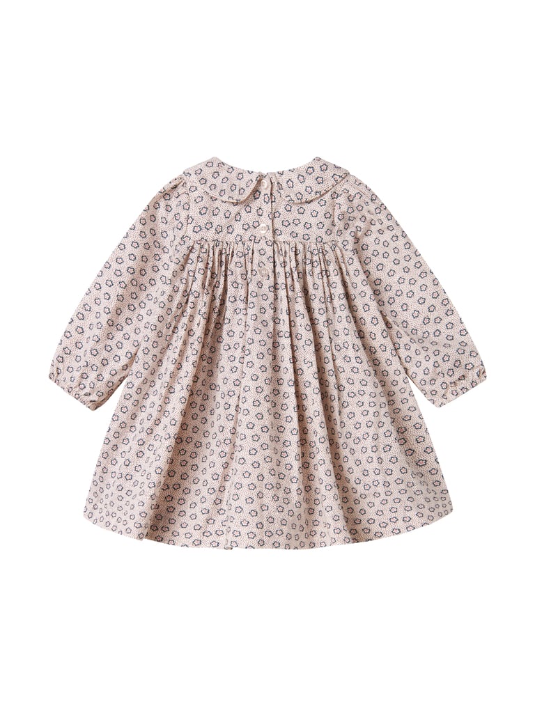 丸みを帯びたお襟と北欧らしい小花柄で優しさと可憐さを併せ持つワンピース。