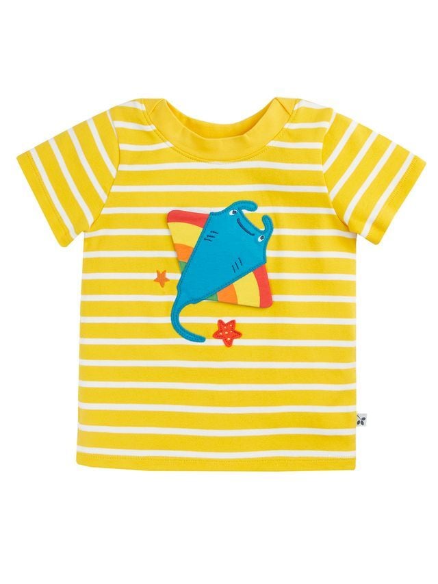 虹色マンタがス~イスイっと泳ぐ姿が絵になるアップリケT。