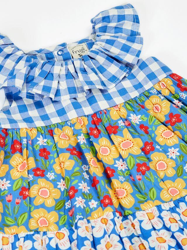 重ね襟の幼さと異なる柄のティアードラインに目を奪われる抜け目ない一着。