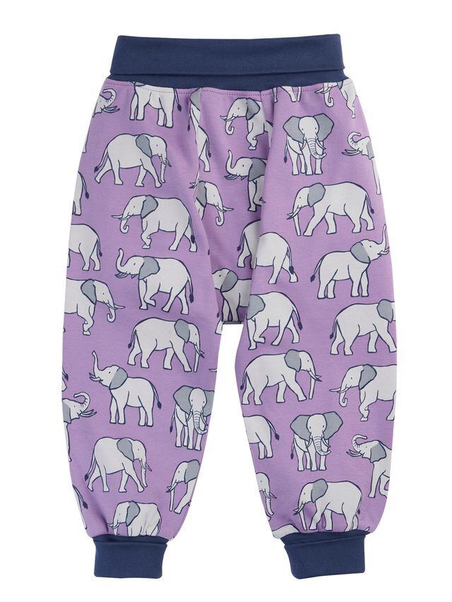 パープル×ぞうさんの組み合わせがカジュアルな中にもしっくり感のある楽ちんパンツ。