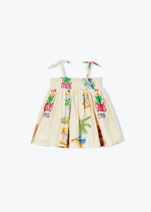 この陽気なコレクションテーマにぴったりな柄が描かれたデザイナーさんオリジナルのテキスタイルのワンピース。