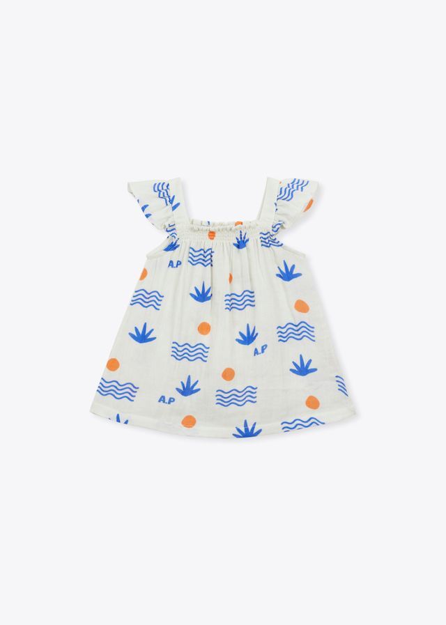 バカンスの気分そのもののコレクションテーマから、楽しさと色彩、潮風のような心地よさを感じるワンピースに。
